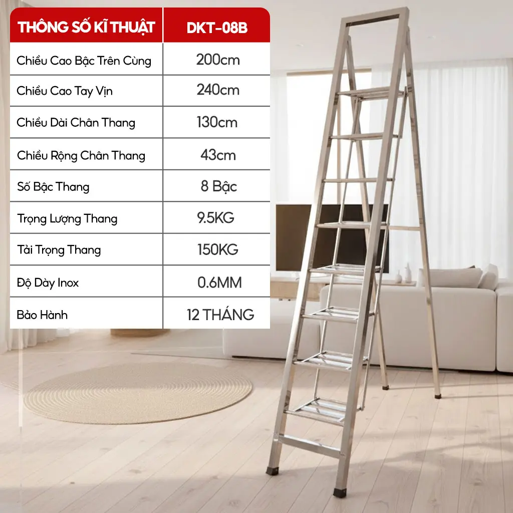 THÔNG SỐ KĨ THUẬT THANG GHẾ BÀN INOX DKT-08B