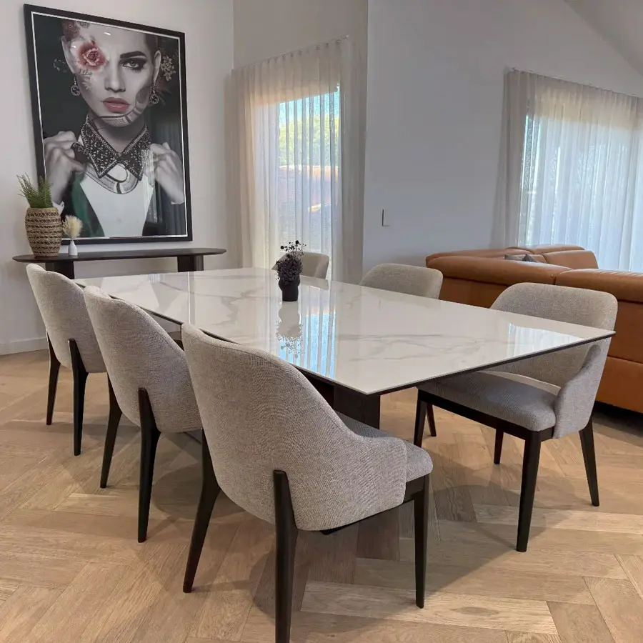 Bộ bàn ghế ăn chính là trái tim của mỗi không gian sống bởi đây chính là nơi các thành viên trong gia đình cùng nhau thưởng thức những món ăn ngon và cùng trò chuyện. Hiểu được vai trò quan trọng của bàn ghế ăn cơm trong gian bếp mỗi gia đình, thương hiệu nội thất cao cấp diện kiến quý khách sản phẩm.