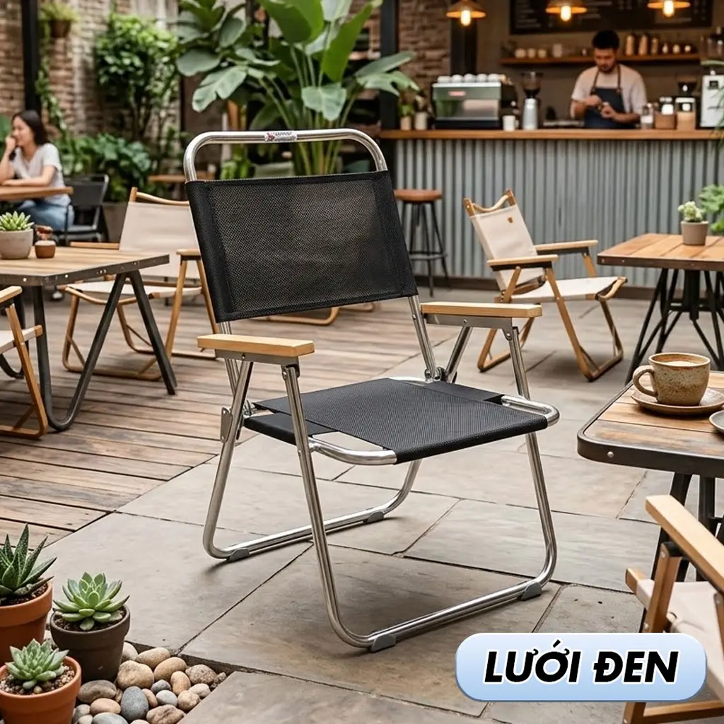 ƯU ĐIỂM : GHẾ XẾP GỌN TIỆN LỢI, CÓ PHẦN ĐỠ LƯNG ĐIỀU CHỈNH THEO LƯNG NGƯỜI NGỒI, NGỒI CÂU CÁ THOẢI MÁI NGÃ NGƯỜI TIỆN LƠI, BÀY TRÍ QUÁN CAFFE SANG TRỌNG – LỊCH SỰ.