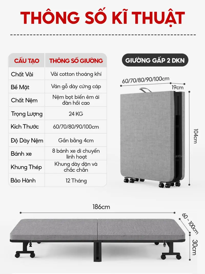 ƯU ĐIỂM SẢN PHẨM GIƯỜNG GẤP GỌN DKN