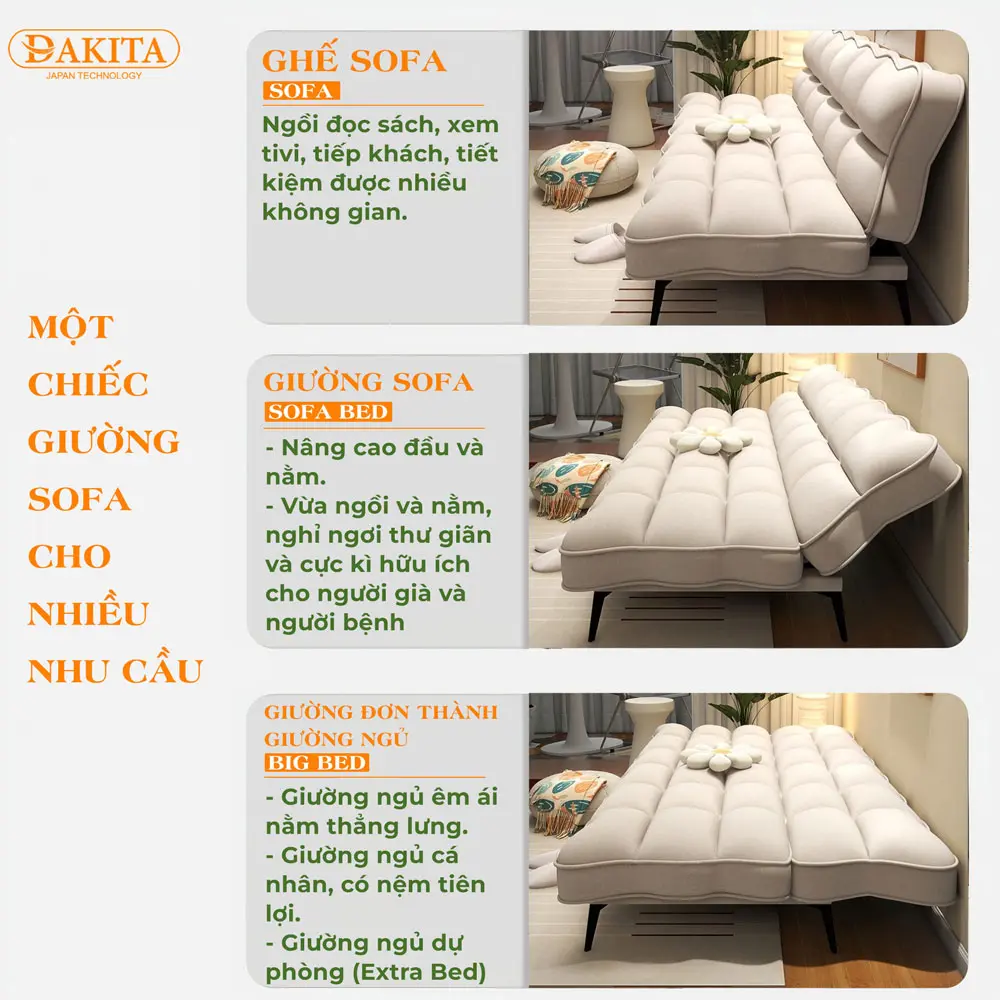 Sofa Giường Lượn Sóng Hàn Quốc Đa Chức Năng Cao Cấp DAKITA – Thiết Kế Sang Trọng