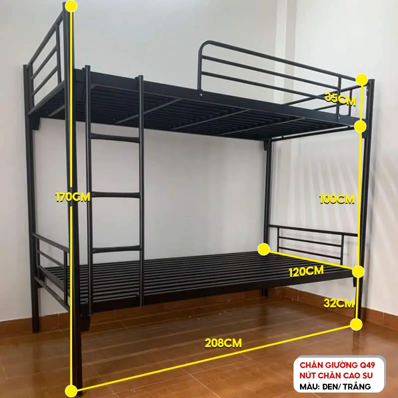 Giường sắt 2 tầng kích thước Cao 1.7m x Dài 2m x Rộng 1.2m