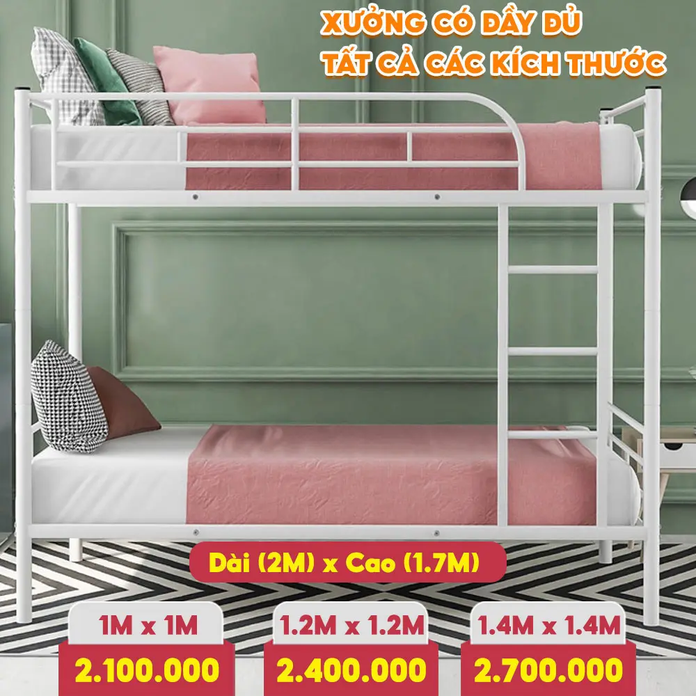 Giường sắt 2 tầng kích thước Cao 1.7m x Dài 2m x Rộng 1.4m