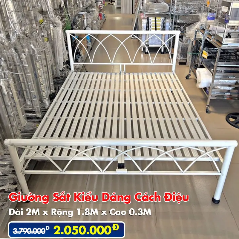 – Giá thành phù hợp, với chiếc giường sắt đa dạng kích thước chúng ta có thể nằm được từ 2 đến 3 người.