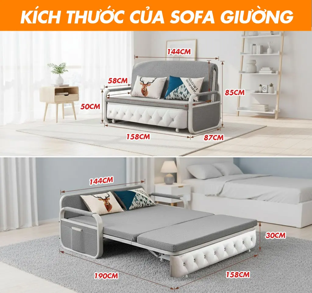 KÍCH THƯỚC CỦA SOFA GIƯỜNG THÔNG MINH DAKITA