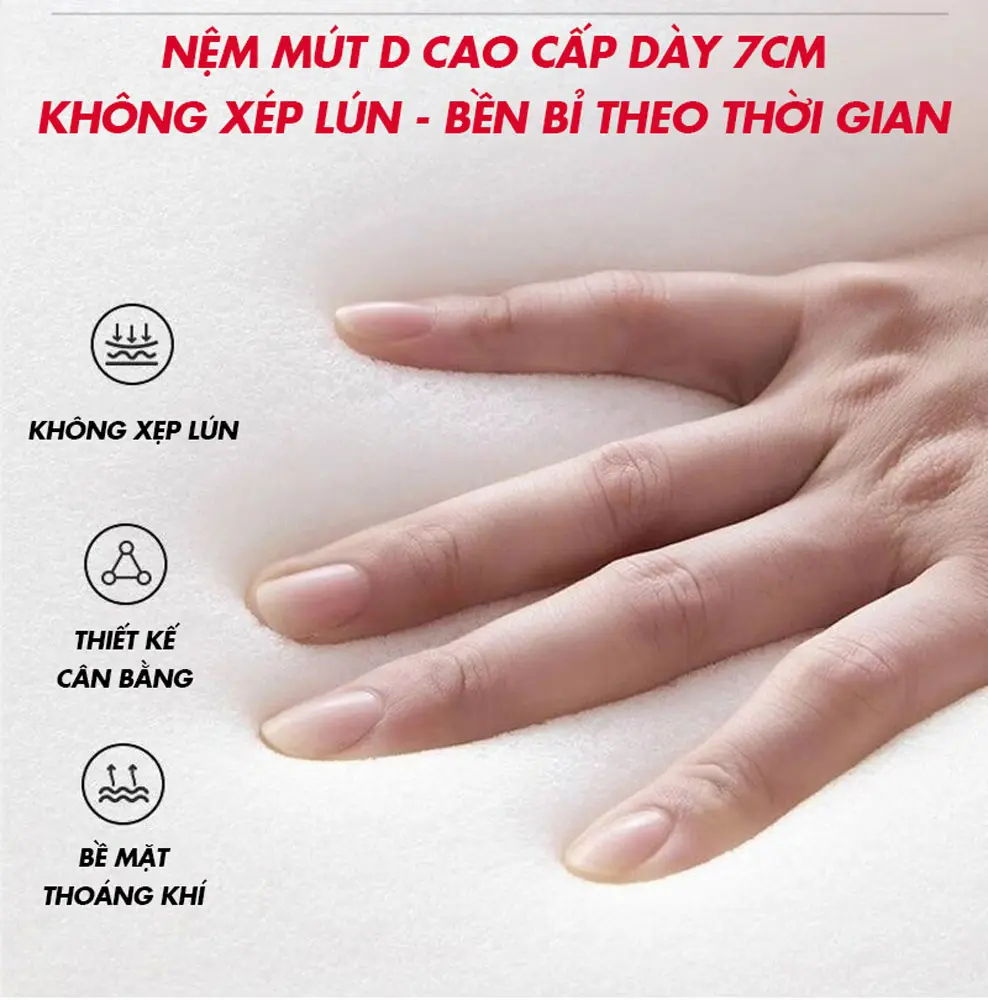 – Đệm mút D mềm êm không lún chống đau lưng.
