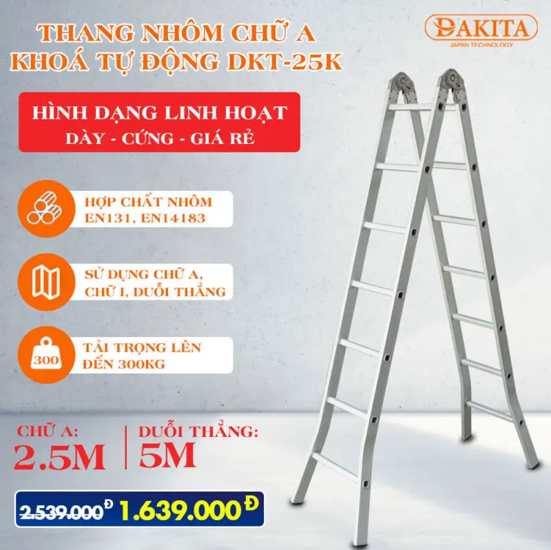 Tên sản phẩm: Thang Nhôm Chữ A Khóa Tự Động DAKITA DKT-25K