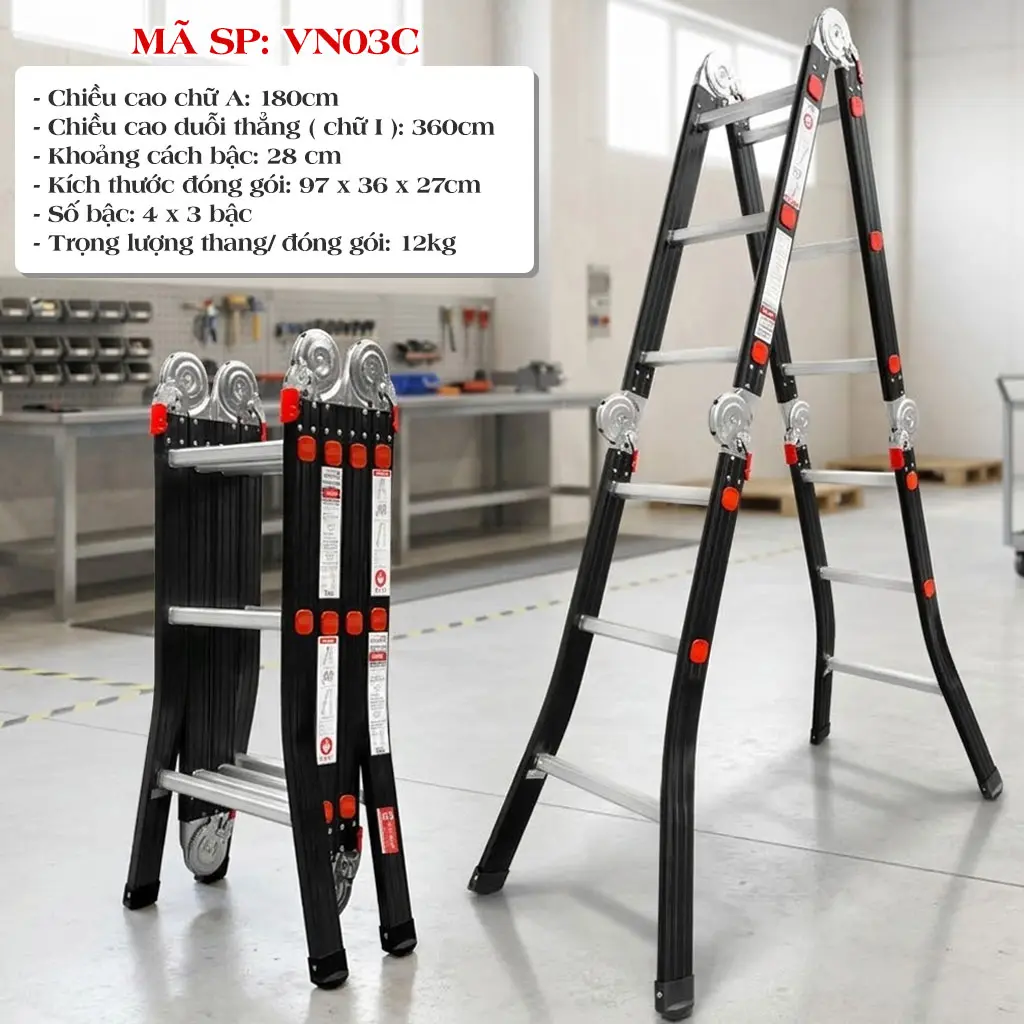 - Model VN03C: Chữ A 1.8m – Duỗi Thẳng 3.6M (3 bậc mỗi bên)
