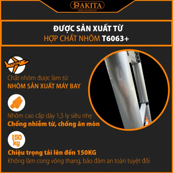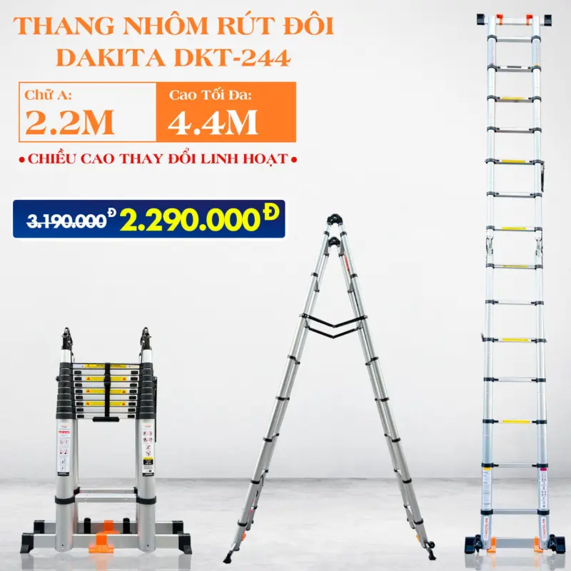 Tên sản phẩm: Thang Rút Đôi Chữ A DAKITA Model DKT – Thang Nhẹ, Nhôm Dày, Cứng Cáp, Thang Đa Năng Tùy Chỉnh Chiều Cao Linh Hoạt, Giải Pháp Cho Mọi Không Gian
