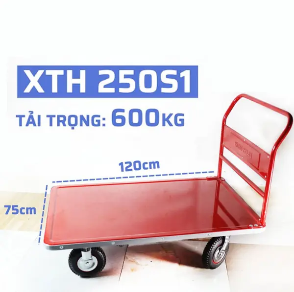 Xe đẩy hàng 4 bánh XTH 250S1 mẫu xe đẩy hàng 4 bánh của Phong Thạnh, kích thước dài 1210cm, rộng 760cm, tải trọng 600kg.