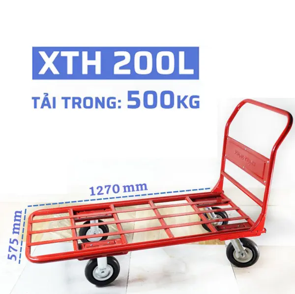 Xe đẩy hàng 4 bánh XTH 200L mẫu xe đẩy hàng 4 bánh gấp gọn của Phong Thạnh, kích thước dài 127cm, rộng 58cm, tải trọng 500kg.